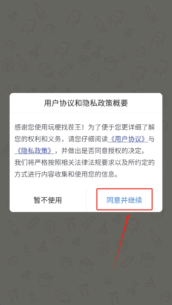 1、用户需要阅读并同意《用户协议》与《隐私政策》后,点击“同意并继续”按钮以进入游戏。