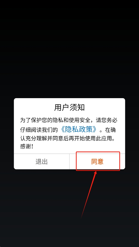 1、同意隐私政策。用户需要阅读并同意应用的隐私政策,点击“同意”按钮以继续。