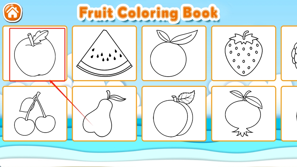 2、选择要涂色的水果。在涂色书界面,用户可以选择他们想要涂色的水果图片。