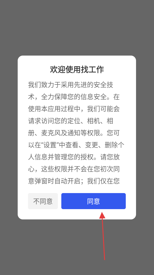 1、初次使用点击【同意】按钮开启软件权限使用。