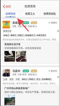 2、在【品牌班组】栏目查找优质劳务相关信息。