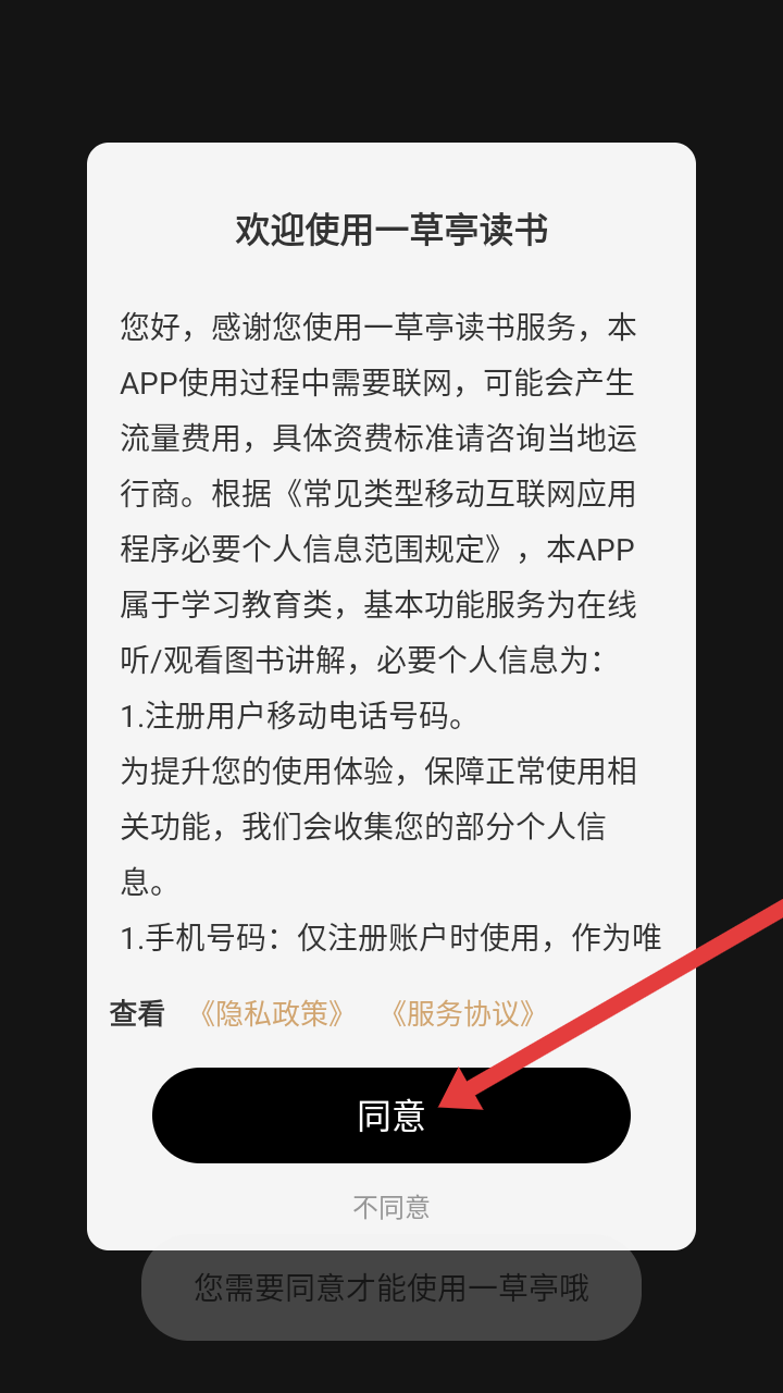1、用户打开软件后,点击【同意】即可进入登录界面。