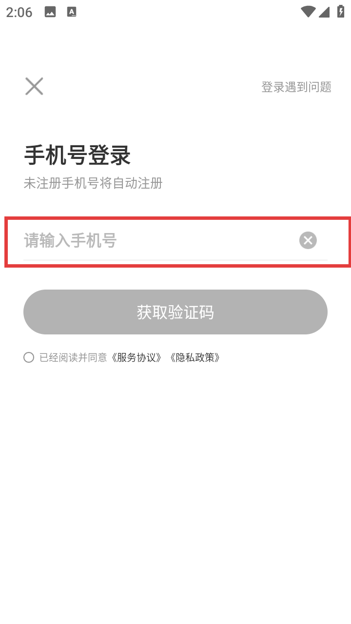 2、用户在登录界面里,在方框内输入手机号即可。