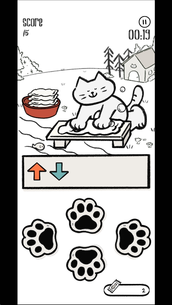 2、进行游戏。用户需要根据屏幕提示,点击相应的按钮来控制猫咪钓鱼。