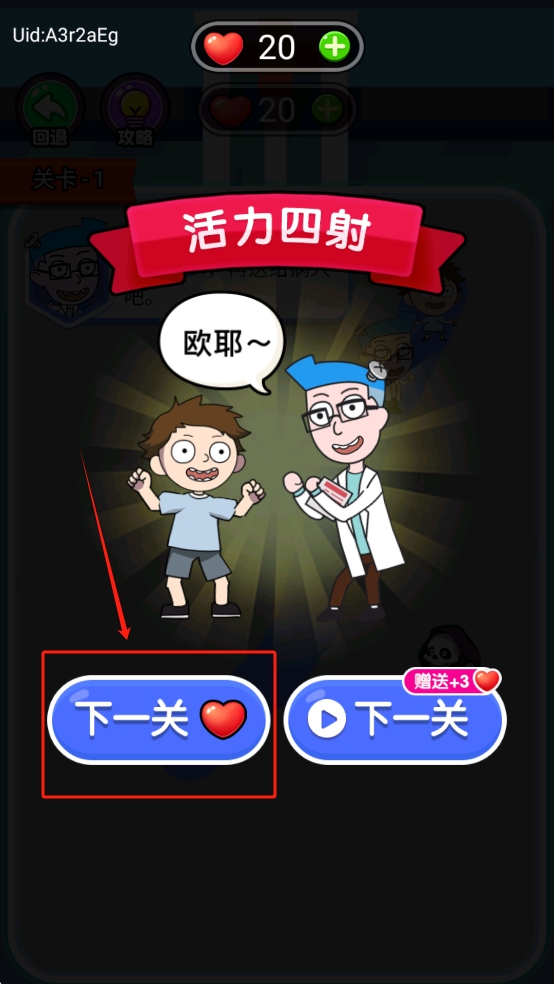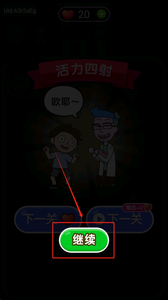 3、完成关卡并继续。当用户完成关卡后,可以点击“继续”按钮以完成当前关卡并进入下一关。