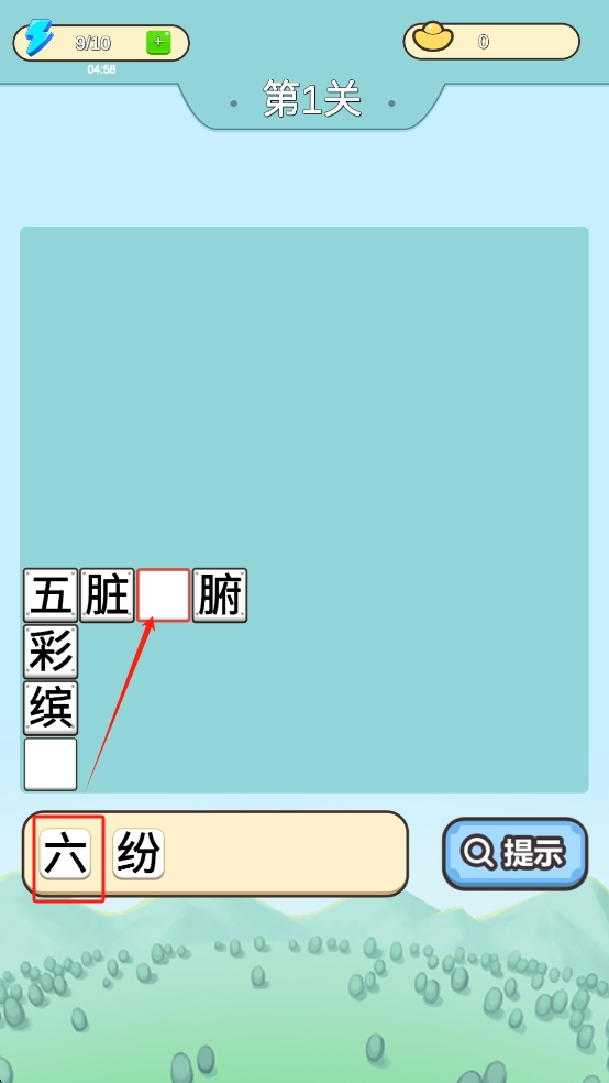 2、填写汉字:在游戏界面中,根据提示或自己的知识,将正确的汉字拖动到空格中以完成填空。