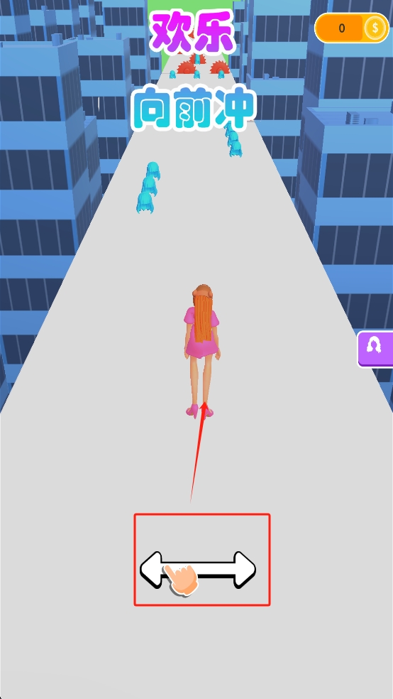 4、控制角色:在游戏中,使用屏幕下方的左右箭头按钮来控制角色移动,避开障碍,向前冲。