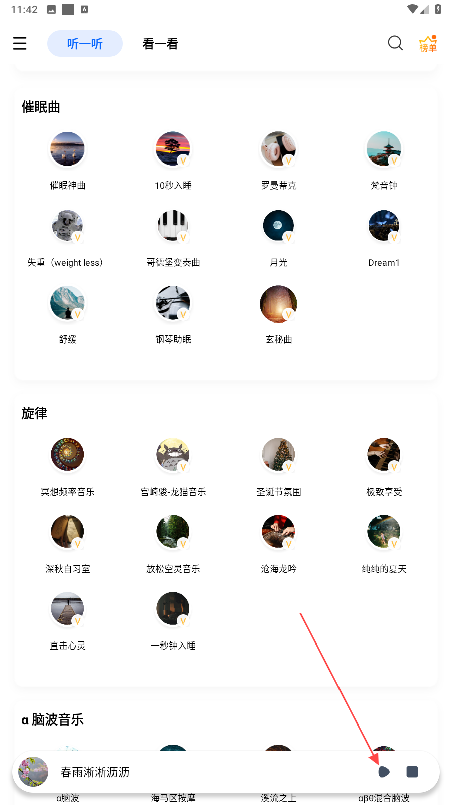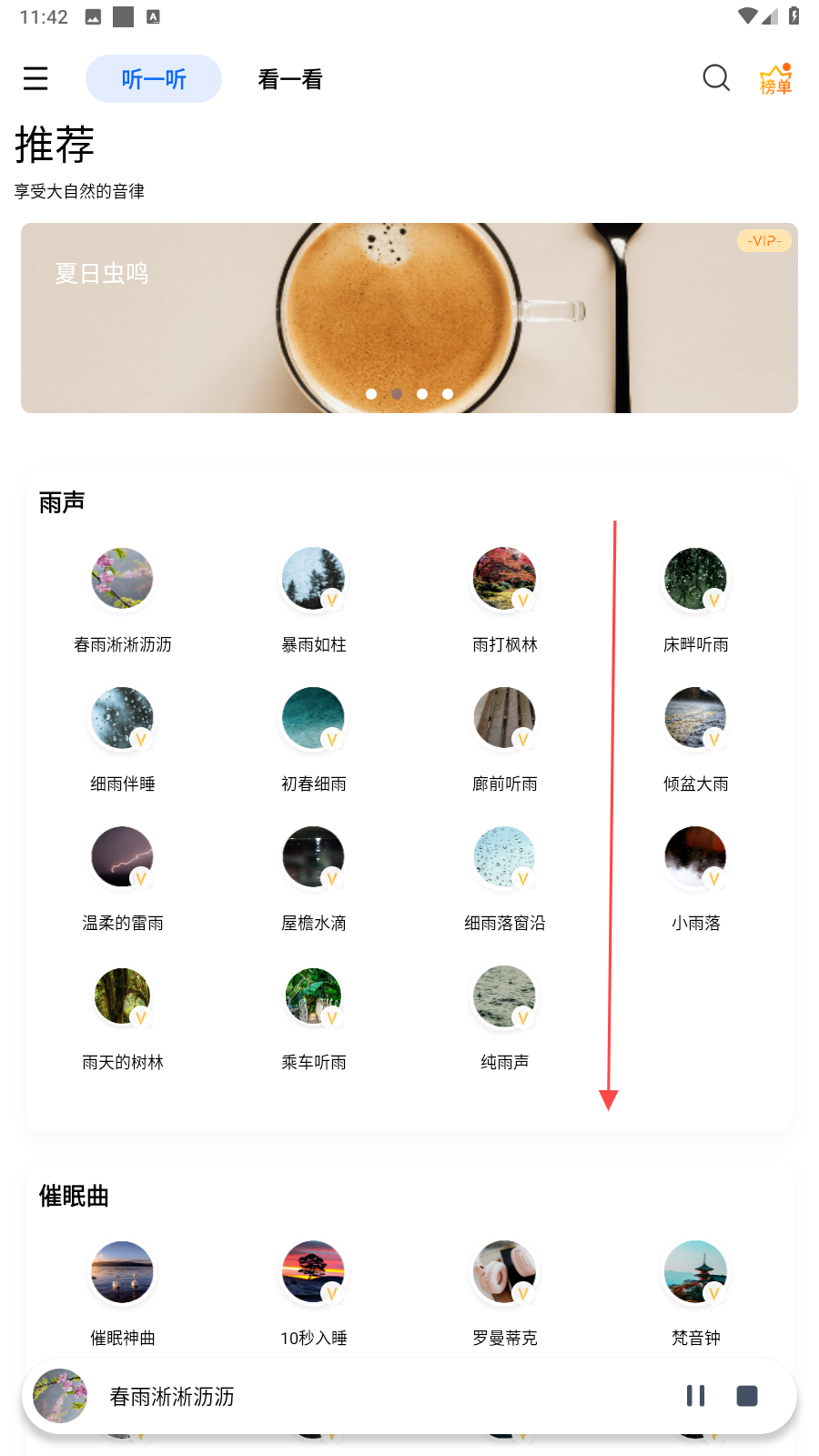 3、手指跟随箭头下滑即可查看更多【助眠类别】。