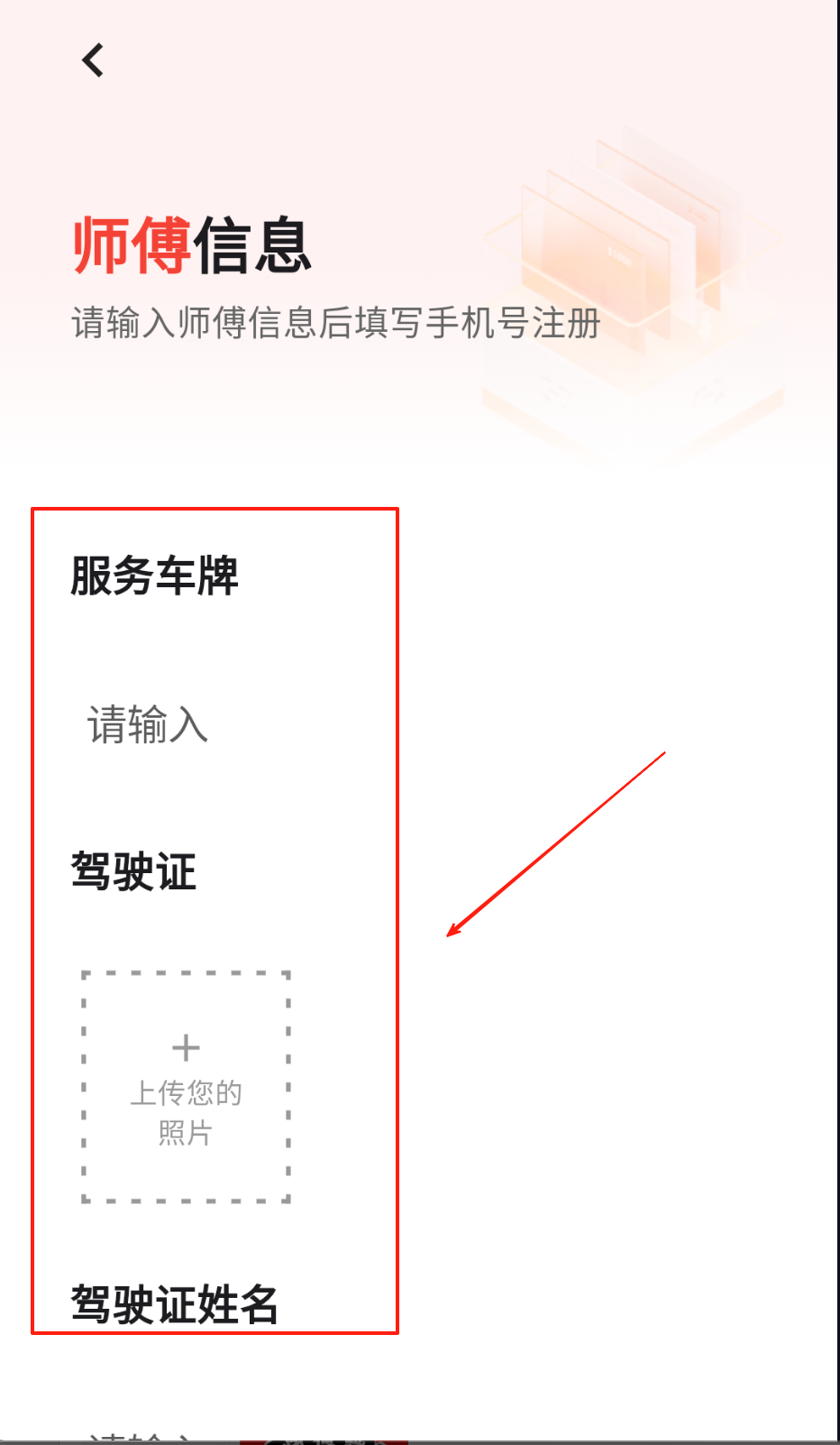 1、注册时记得先填好服务车牌和驾驶证姓名,在驾驶证板块点击加号上传清晰证件照,核对信息别着急提交,确认无误再点下一步。