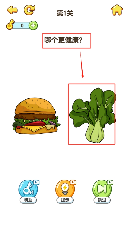 3、选择答案:在问题界面,选择正确的答案,例如点击更健康的选项。