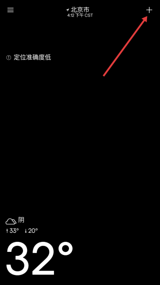 2、进入天气应用界面后,点击右上角【+】按钮,可进行添加城市等操作。
