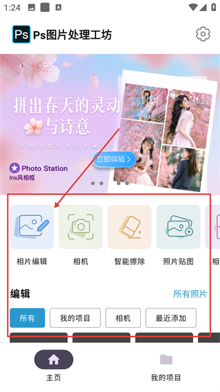 1、在软件首页,点【相片编辑】功能,可进入图片编辑界面,开始处理照片啦。