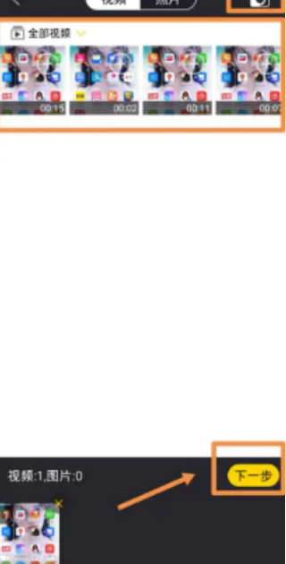 2、选择需要剪辑的视频后,点击【下一步】。
