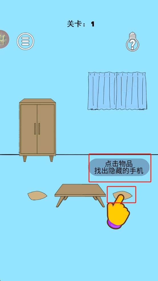 2、寻找手机:在关卡1中,点击物品找出隐藏的手机。