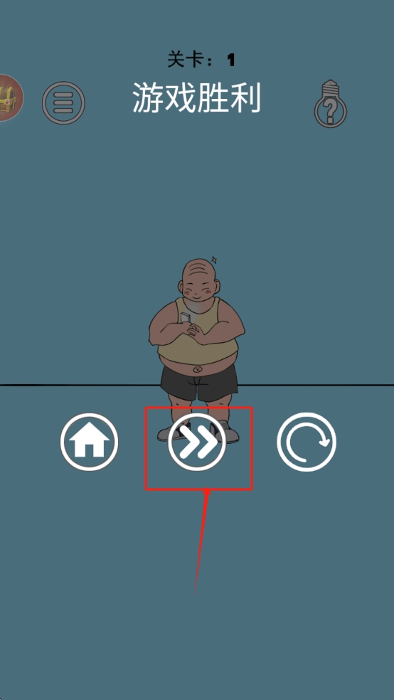 4、查看游戏胜利:在关卡1完成后,点击右下角的播放按钮查看游戏胜利画面。