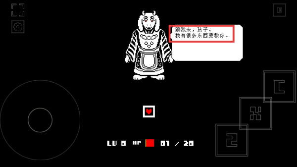 2、跟随提示,按【跟我来,孩子。我有很多东西要教你。】指引,向角色学习游戏操作和知识。