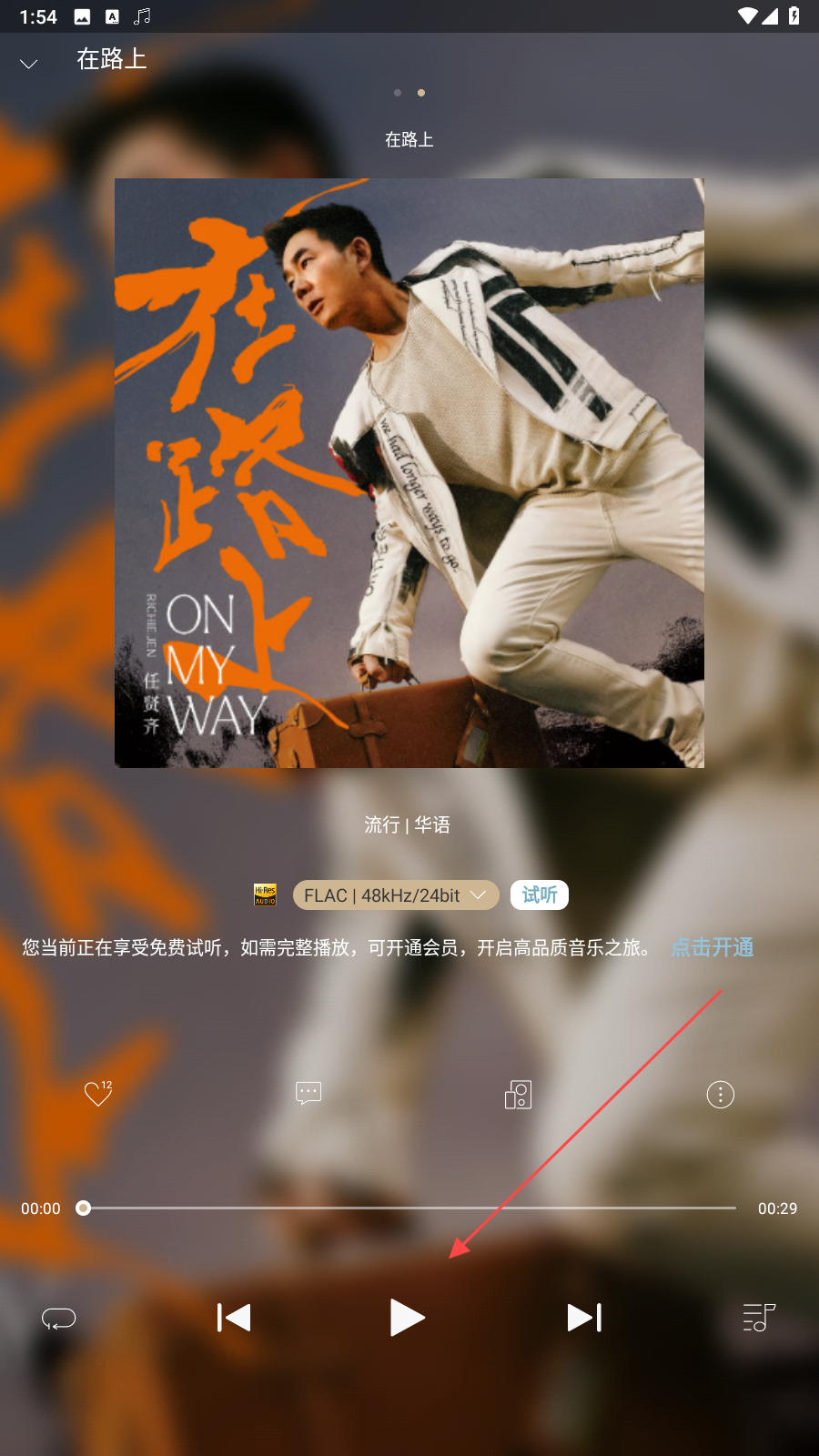 3、在歌曲界面,点击【开始】播放。