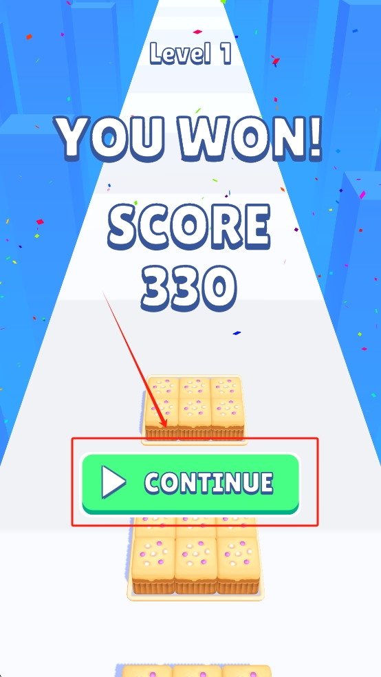 3、完成关卡:在完成关卡后,点击“CONTINUE”按钮继续游戏或进入下一关。