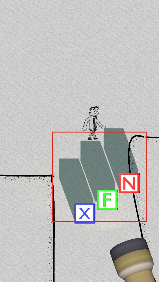 2、控制角色:在游戏中,通过拖动屏幕上按钮来控制角色的影子,使其与障碍物匹配。