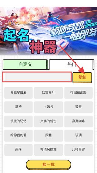 3、选中喜欢的名字,点击【复制】按钮,即可复制名字用于游戏中。