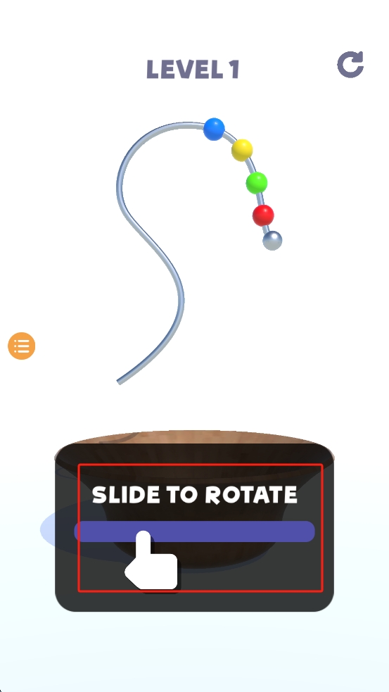 2、开始游戏:进入游戏后,滑动“SLIDE TO ROTATE”滑块以旋转管道,使彩色珠子顺利进入碗中。