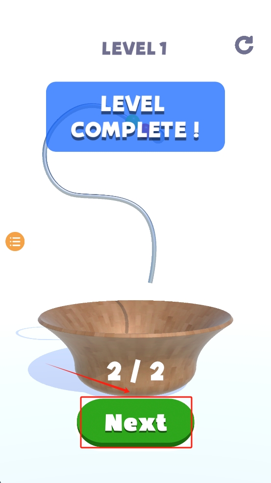 3、完成关卡:当珠子成功进入碗内,点击“Next”按钮以确认完成当前关卡并进入下一关。