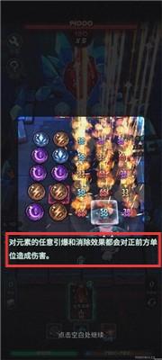 1、三消卡牌融合机制:拖动卡牌至元素球区域触发消除,三连消可激活暴击,配合元素属性连锁产生范围伤害。