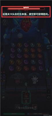 1、在游戏消除界面,留意下方卡槽,按照提示,合理使用卡牌道具,可助力消除元素,为攻击关卡头目做准备。