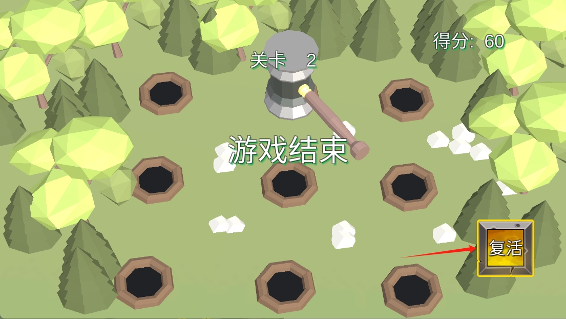 3、游戏结束后点击“复活”继续挑战。此步骤为新手提供重新开始游戏的机会,增加游戏的可玩性。