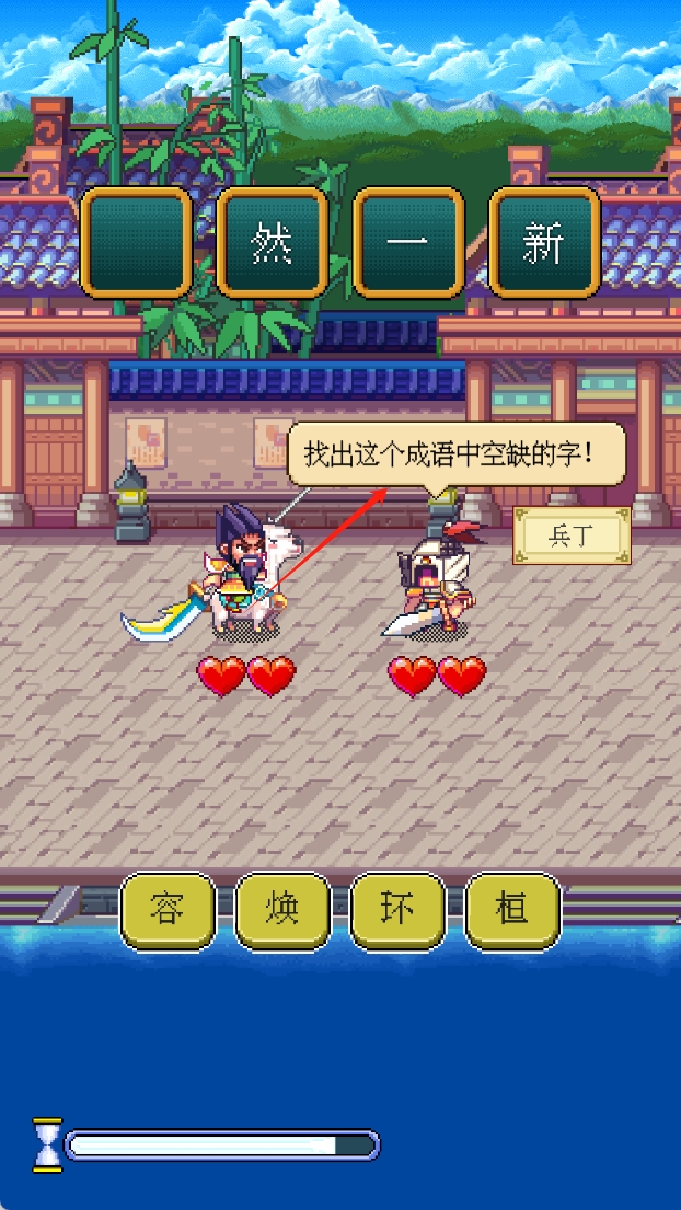 3、找出成语中空缺的字并选择正确答案。此步骤帮助新手掌握游戏核心玩法,提高成语知识。