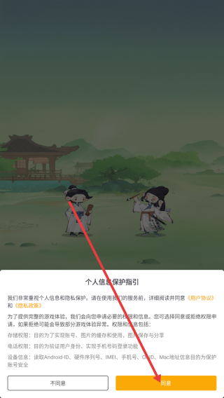 1、进入游戏,点击【同意】。