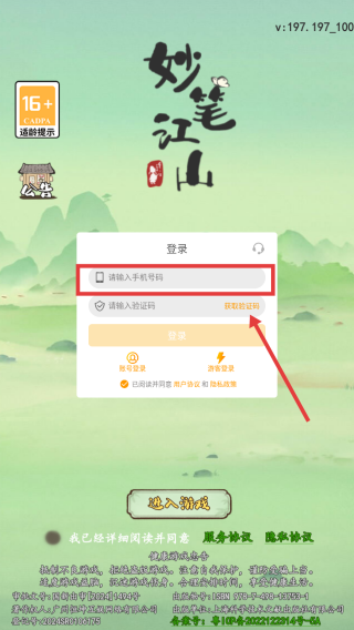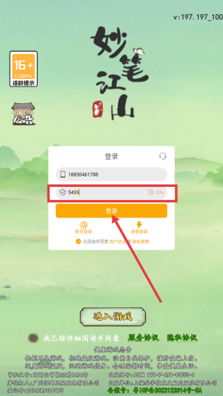 3、输入验证码,点击【登录】,即可开始游戏。