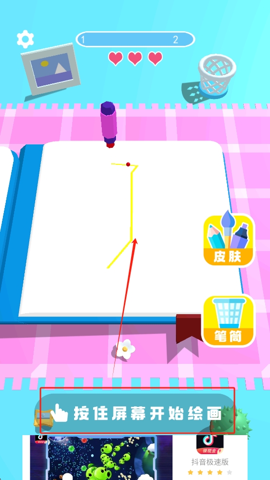 2、开始绘画:在游戏主界面,点击“按住屏幕开始绘画”开始游戏。