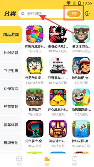 2、在【分类】页面,通过搜索栏输入关键词查找游戏。