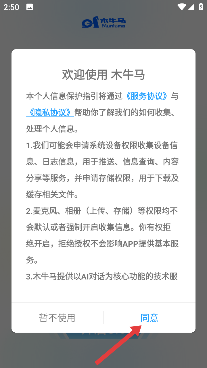 1、用户打开软件后,点击【同意】即可进入登录界面。