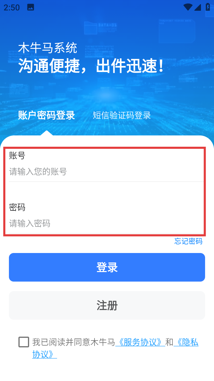 2、用户在登录界面里,将账号和密码输入至方框内即可。