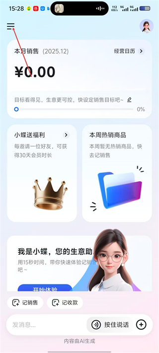 1、在应用首页,点击左上角的菜单按钮,展开功能菜单列表。