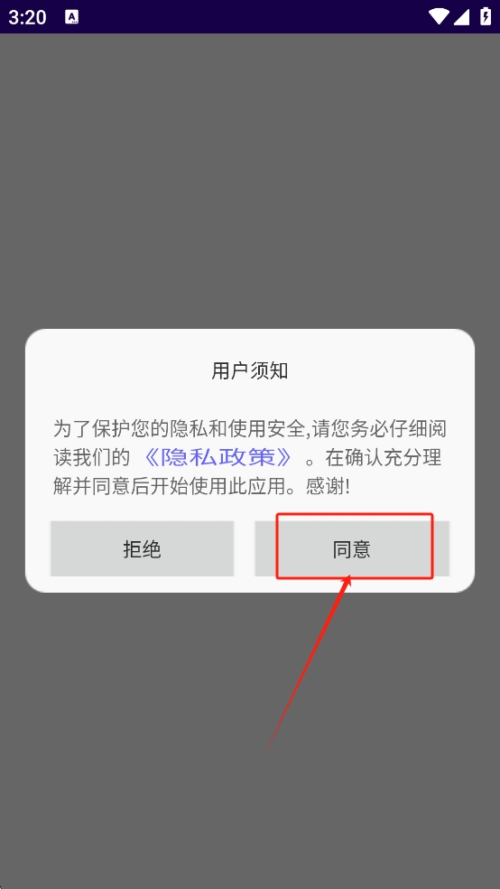 1、同意用户须知:在游戏启动时,点击“同意”按钮以接受用户须知并开始游戏。