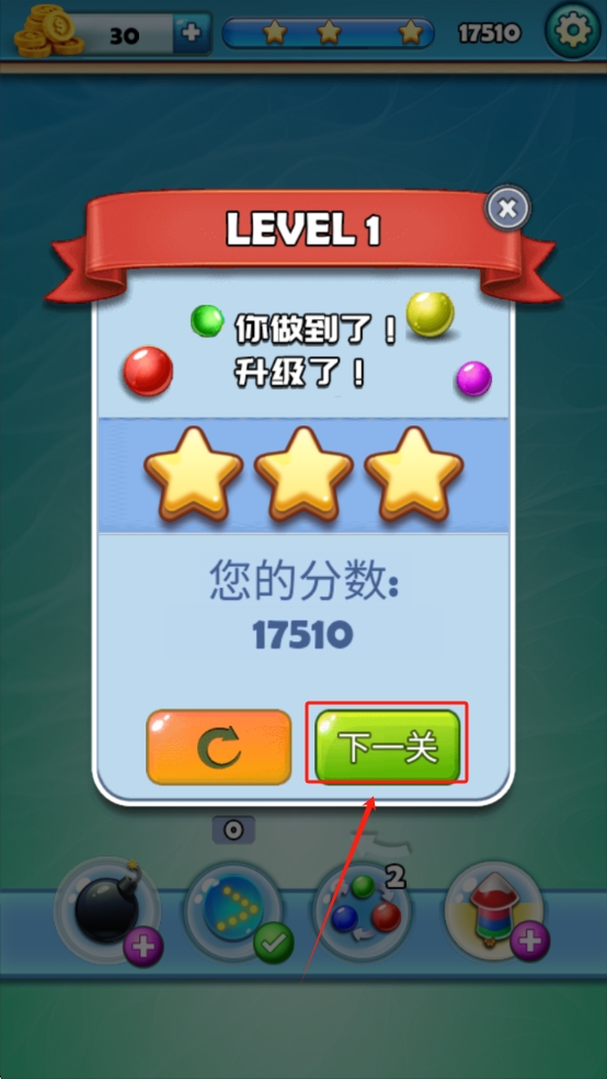 3、完成关卡:成功通过关卡后,点击“下一关”按钮继续进行下一个关卡。