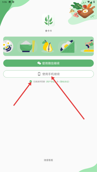 1、进入软件,勾选同意用户需要,点击【使用手机继续】。