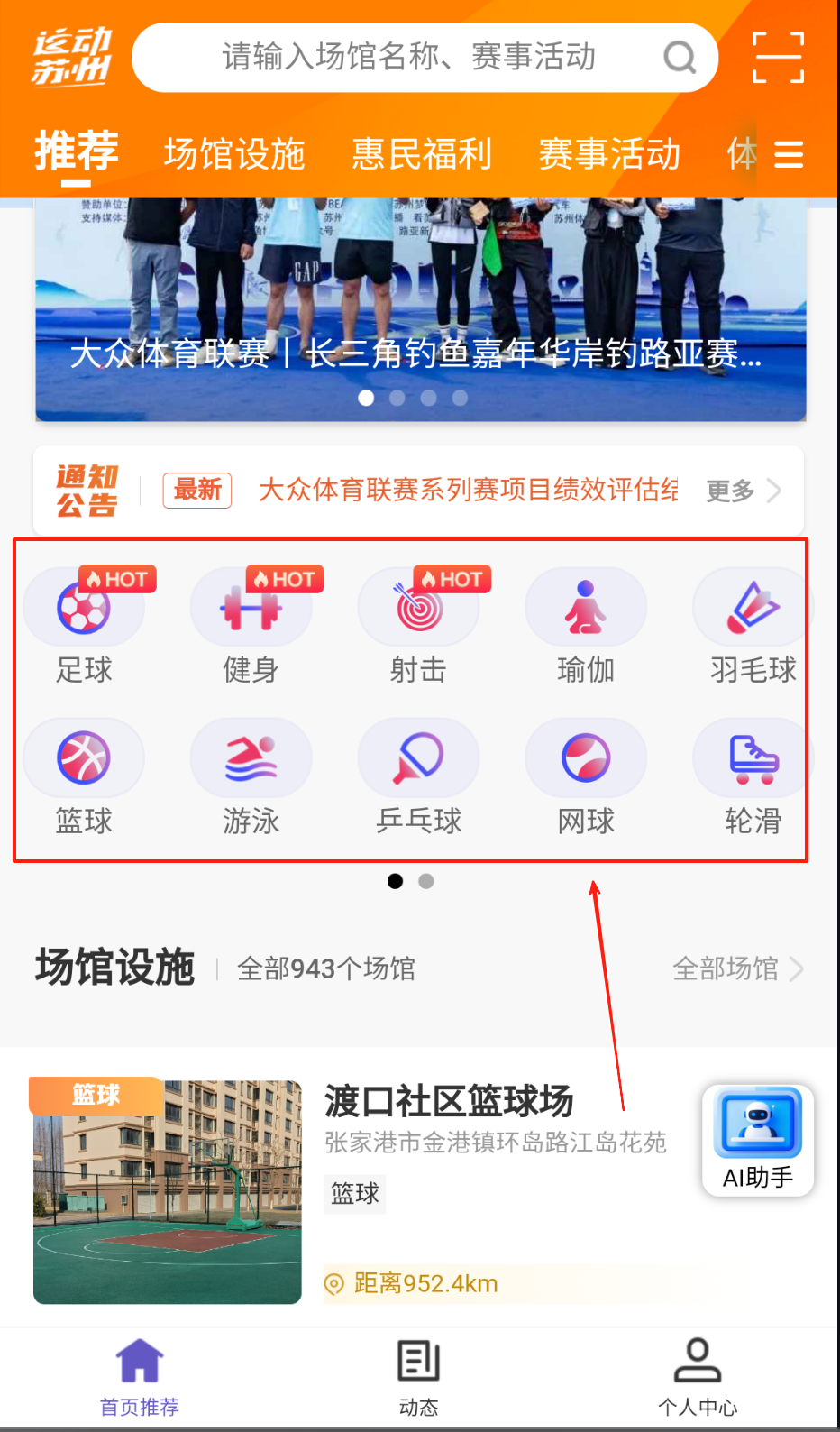 2、智能运动分类导航体系,采用多层级标签系统分类管理羽毛球游泳等主流运动项目,实现专项资源的精准定位。