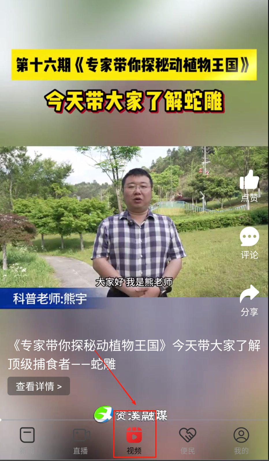 3、通过底部功能栏切换至视频专区或爆料平台,上传县域见闻或观看特色文化短视频。