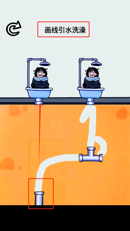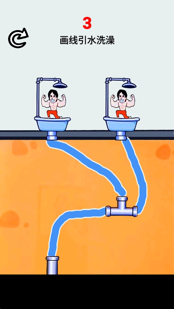 4、完成挑战:在挑战界面,通过画线引导水流给角色洗澡。