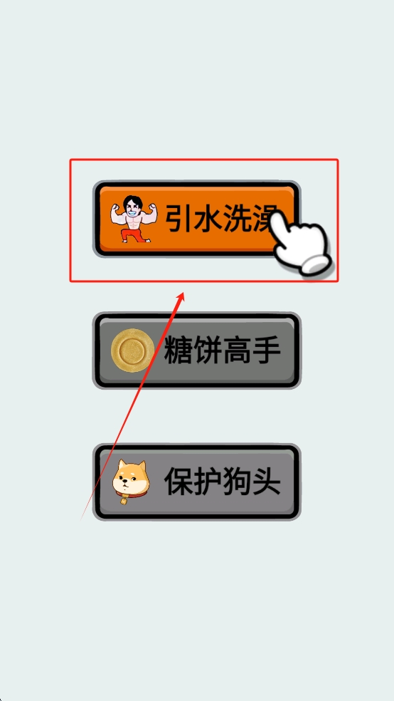 3、选择操作:在操作界面,点击“引水洗澡”按钮选择操作。
