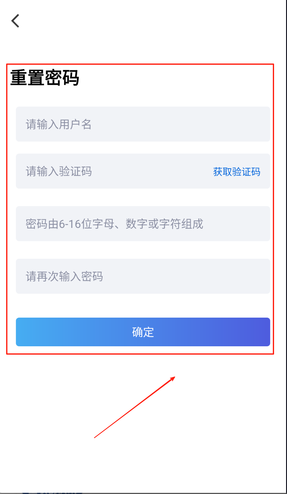 2、忘记密码别着急,在登录页点击忘记密码跳转重置界面,准确输入注册时的用户名,获取验证码时会发到绑定手机。