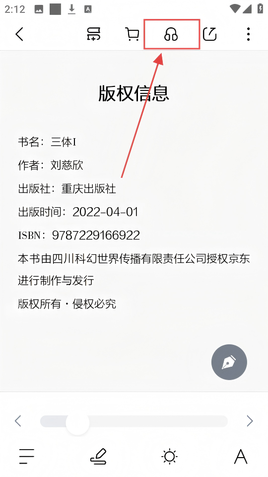 3、阅读时,点击页面上方耳机图标,可开启语音朗读功能,超方便的。