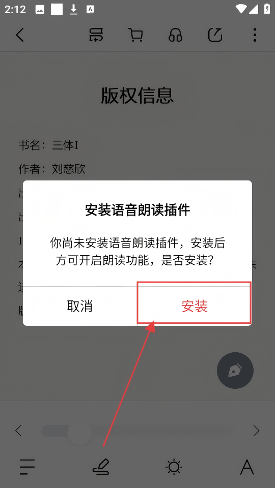 4、若提示未安装语音朗读插件,点击【安装】,装好后就能用语音朗读功能啦。