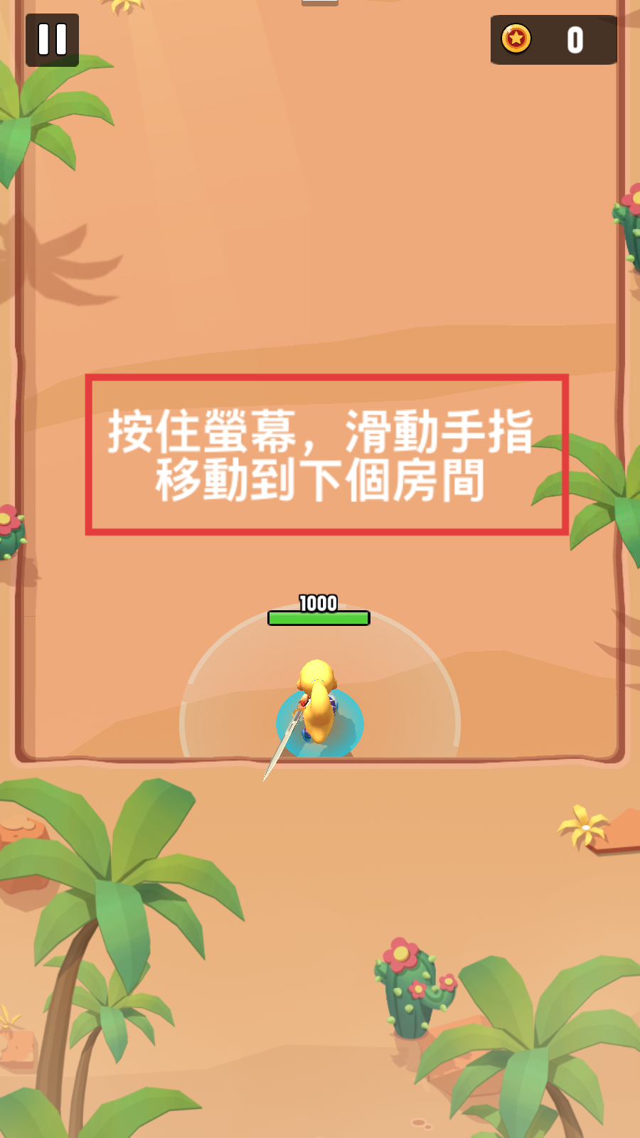 1、在游戏场景中,依照提示【按住螢幕,滑動手指移動到下個房間】,实现场景切换。