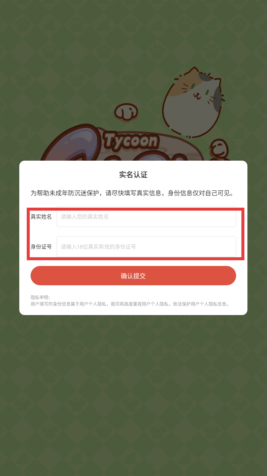 1、进入游戏,点击【实名认证】。