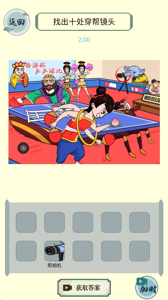 4、进行游戏挑战:在游戏过程中,根据提示找出图中的穿帮镜头,例如找出乒乓球比赛中的摄像机穿帮镜头。